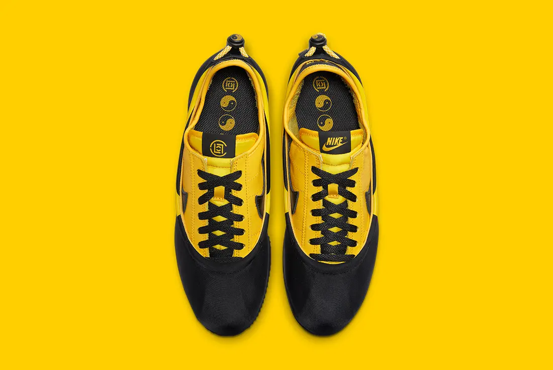 Hanno da subito attirato l’attenzione degli appasionati, con il loro stile unico e innovativo. Le CLOT x Nike “Clotez” sono una rivisitazione delle classiche Cortez, con tomaia flessibile e rimovibile, che permette di indossarle sia con che senza il rivestimento. Il drop è previsto in due colorazioni: nero/giallo (che vedete nelle foto) e nero/bianco. La versione gialla, è un chiaro tributo all’attore e maestro di arti marziali Bruce Lee.