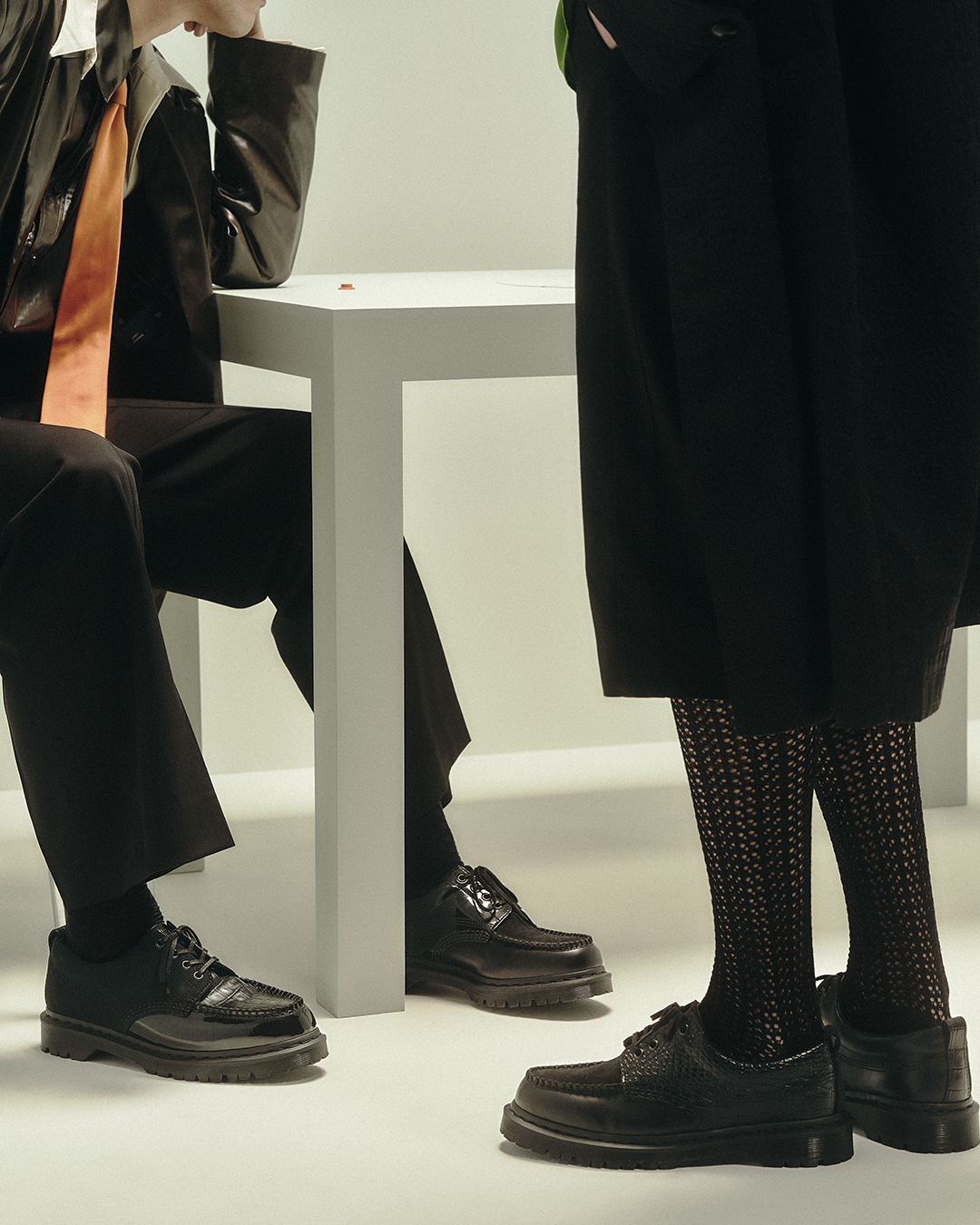 La Lowell non è il classico anfibio 1460, né la derby 1461 più conosciuta. È un modello che vive in una zona più sofisticata dell’archivio Dr. Martens: tomaia strutturata, suola solida ma meno massiva rispetto ai modelli iconici, un equilibrio tra formalità e spirito ribelle. Ed è proprio questa ambiguità stilistica a renderla perfetta per l’intervento creativo di BEAMS.