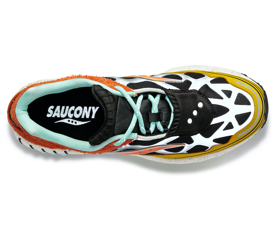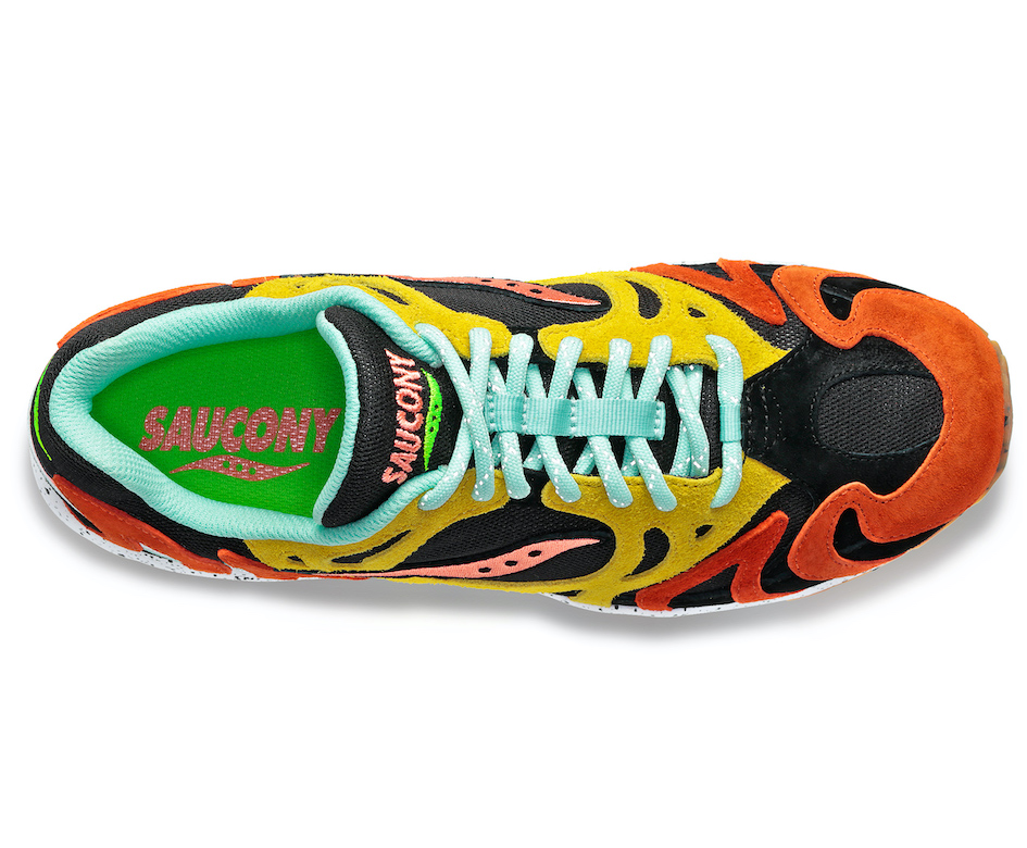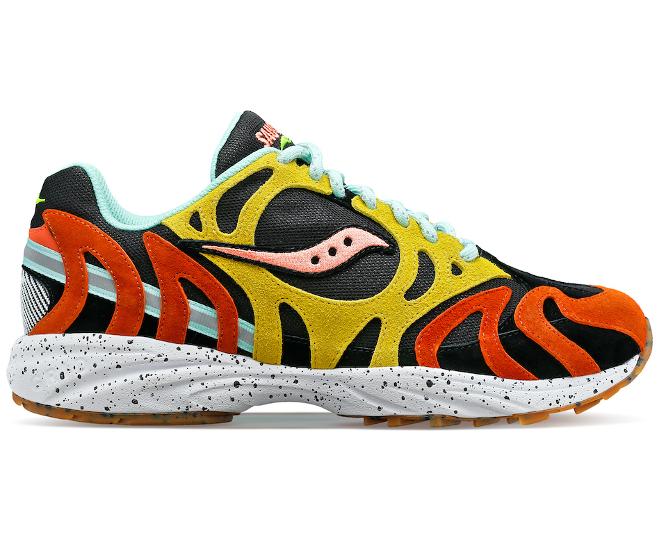 Le silhouette più iconiche di Saucony – 3D Grid Hurricane, Shadow 6000, Jazz 81, Grid Azura 2000 e Grid Web – tornano con una nuova veste vivace e colorata che si rifà alle creature fantascientifiche del pianeta Trailia. Ispirata agli extraterrestri e a ciò che è oltre il pianeta Terra, questa collezione spinge oltre l’asticella della creatività alla ricerca di nuove colorazioni, pur rimanendo fedele al DNA del marchio.