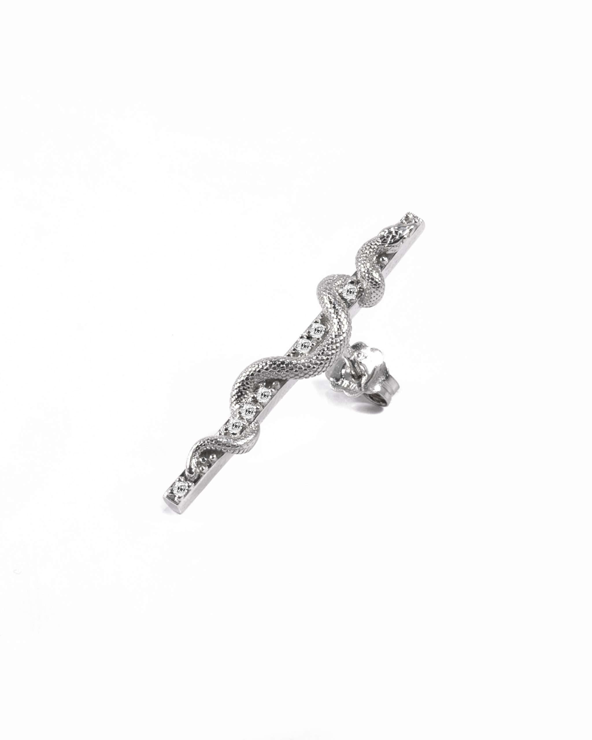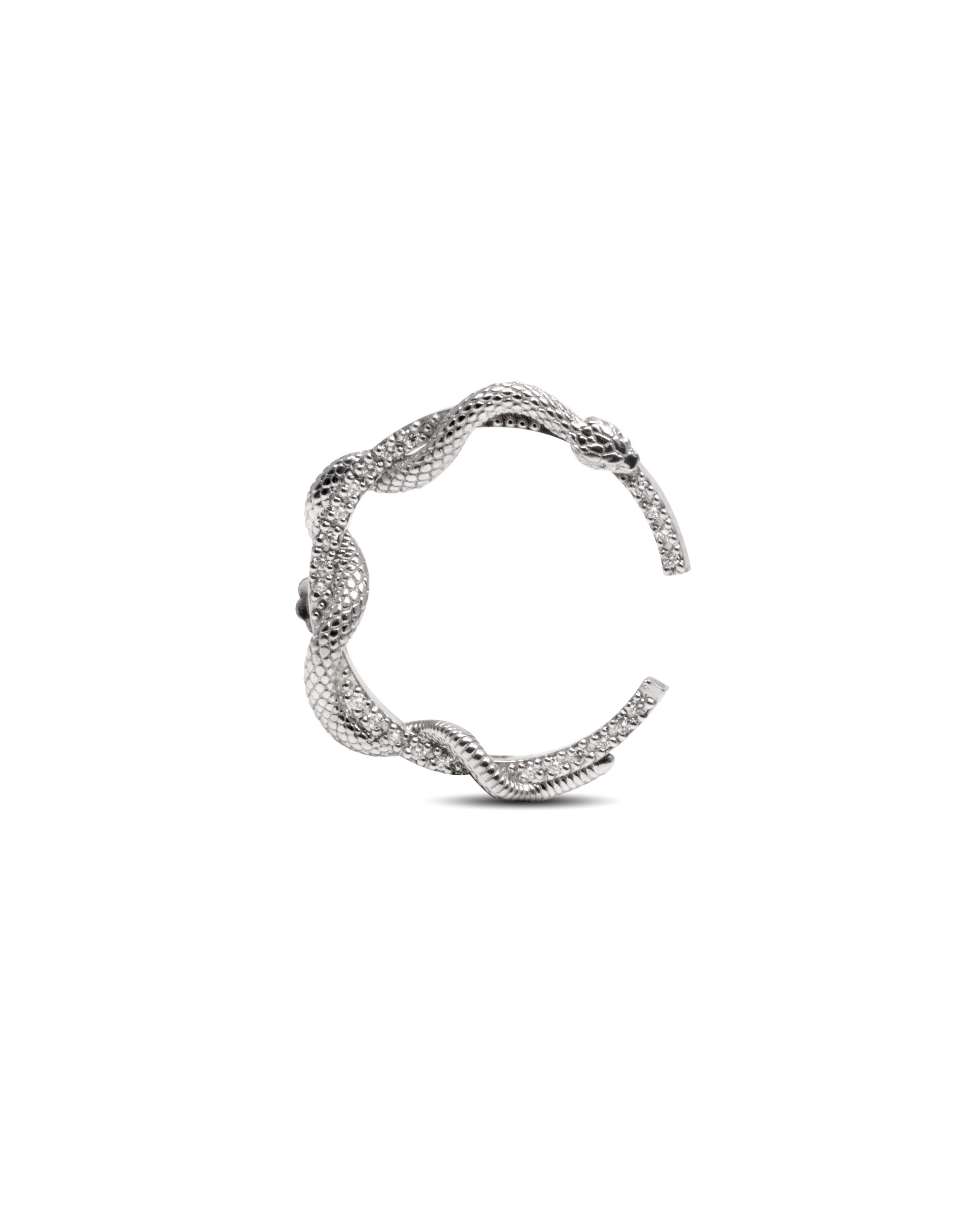 Il serpente circonda la sua preda e la intrappola in un elegante movimento circolare, dal quale nasce un orecchino insieme sensuale e luminoso.