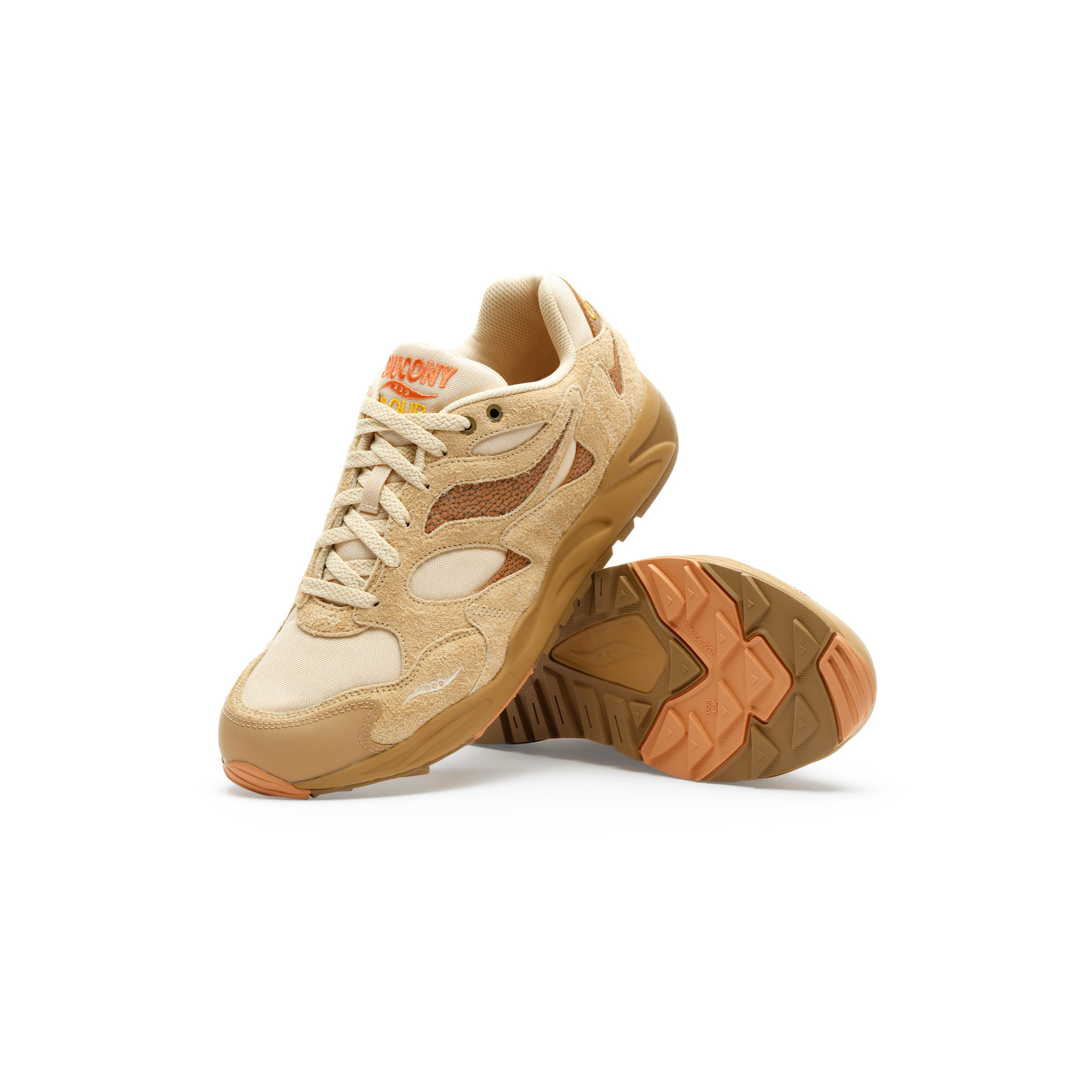 Il capolavoro nato da questa collaborazione prende il nome di “Beach Ramble“, un titolo che evoca immediate immagini di passeggiate sulla spiaggia, di sabbia dorata e acque cristalline. Questa versione della Grid Shadow 2 si ispira proprio a queste sensazioni, infondendo nelle tonalità, nei dettagli e nelle texture della scarpa tutto il calore e la serenità di una giornata trascorsa all’aperto. La tomaia della scarpa si presenta come un intreccio sinuoso di materiali diversi, sfumando con eleganza dal marrone al beige, come le sfumature mutevoli della sabbia baciata dal sole.