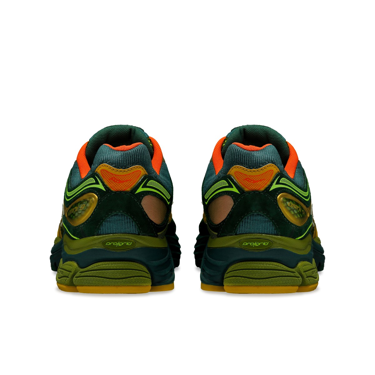 La nuova Progrid Omni 9 è una celebrazione dell’equilibrio tra stile e funzionalità. La tomaia in mesh bicolor verde, alternata a pelle scamosciata verde scuro e inserti verde-oro metallizzato, crea un mix di colori sofisticati e grintosi. Ogni dettaglio è studiato per dare alla scarpa un’estetica potente, che si distingue senza rinunciare alla versatilità.